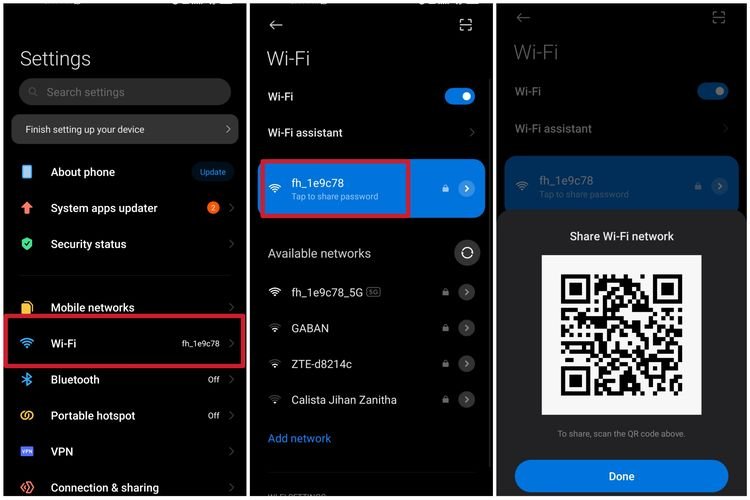 Jika ponsel Anda sudah terhubung dengan jaringan WiFi sebelumnya, Anda bisa melihat password-nya melalui menu pengaturan: