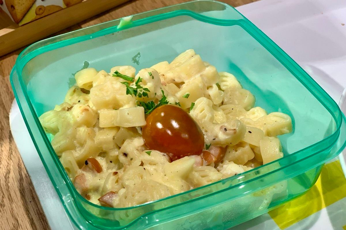 Pasta carbonara versi ini dimodifikasi agar lebih ramah untuk anak, tanpa menggunakan telur mentah seperti resep asli Italia. Sebagai gantinya, digunakan susu dan keju untuk menciptakan saus yang lembut dan creamy. Sosis ayam ditambahkan sebagai sumber protein yang lebih ringan dan disukai anak-anak. Kombinasi bahan ini memberikan keseimbangan antara rasa dan nutrisi.